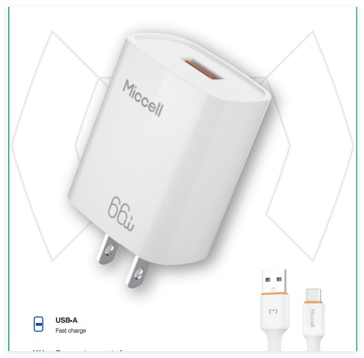 es un cargador de pared Miccell de 22.5W diseñado para carga rápida y eficiente. Este modelo destaca por su compatibilidad multi-protocolo, lo que le permite fu